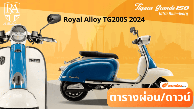 ตารางผ่อนมอเตอร์ไซต์ตารางผ่อน Royal Alloy TG200S 2024 เริ่มต้น 169,000 บาทRoyal Alloy TG200S เป็นรถสกู๊ตเตอร์ที่นำเสนอสไตล์โมเดิร […]